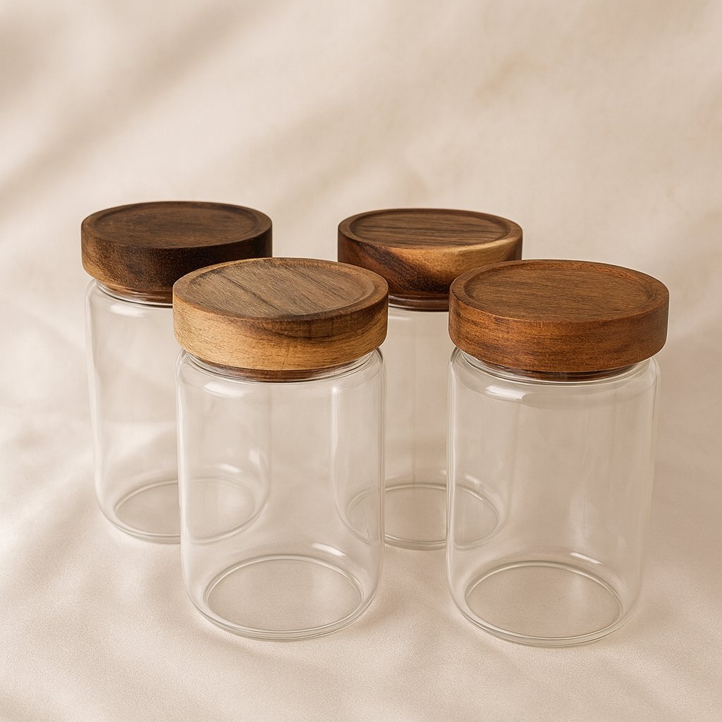 Vneste do svojej kuchyne harmóniu a poriadok s touto nadčasovou koreničkou z borosilikátového skla a elegantného viečka z prírodného akáciového dreva. Dostupná personalizácia.