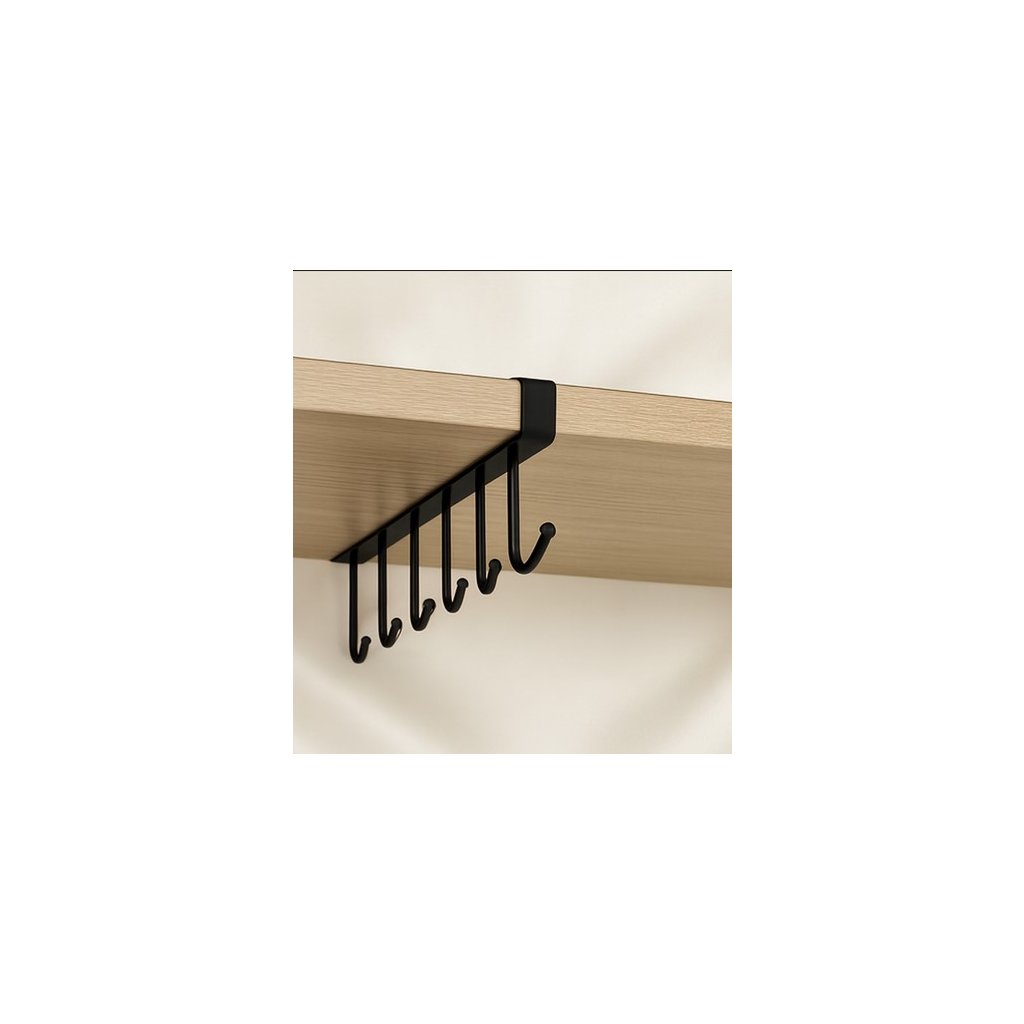 Závesný organizér s 6 háčikmi, ktorý sa jednoducho zasunie pod poličku alebo dosku. Bez vŕtania, bez skrutiek – okamžité využitie priestoru navyše.
