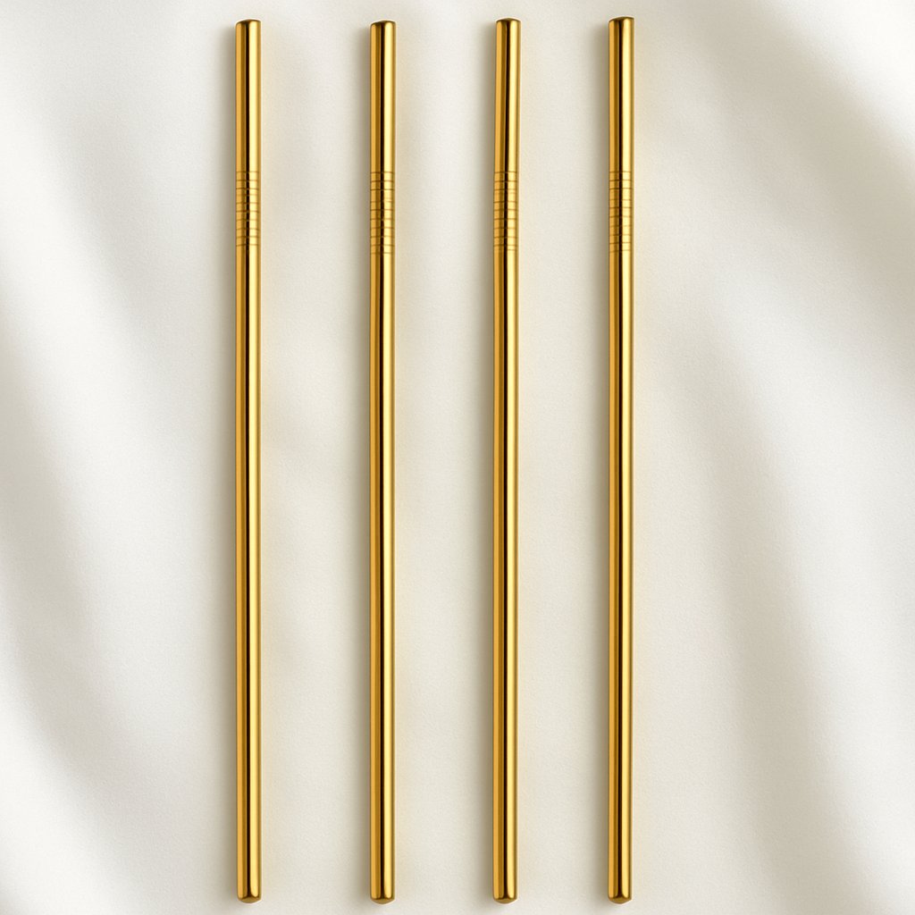 Elegantná sada 4ks zlatých rovných kovových slamiek. Sú ideálnou voľbou pre ekologické pitie nápojov doma, ale aj na cestách.